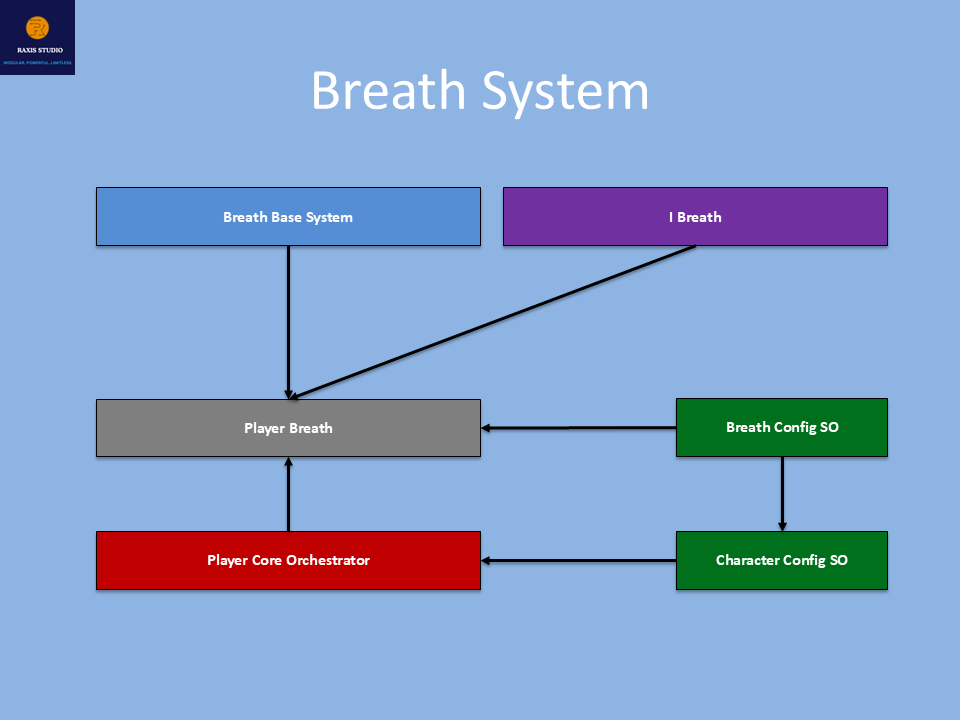 - Breath System → Manages oxygen levels, depletion, and recovery with event-driven notifications.