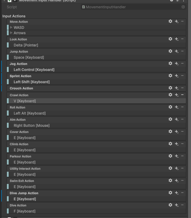 - Enum-Driven States → All movement, animation, IK, and interaction systems use enums (not strings), so states can be added or removed cleanly.